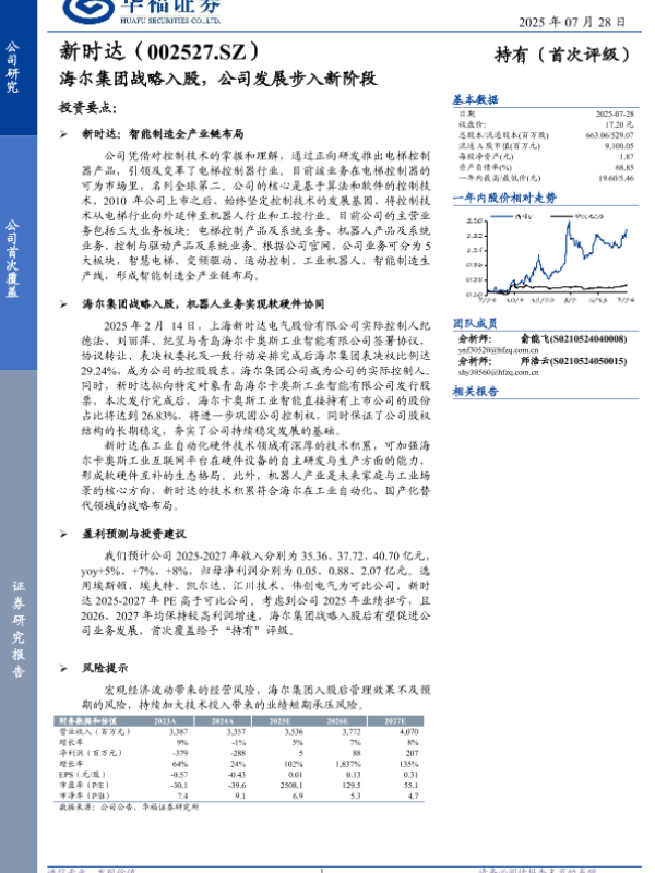 【华福证券】【202507】新时达(002527.SZ):海尔集团战略入股,公司发展步入新阶段-16页 证券期货研究报告