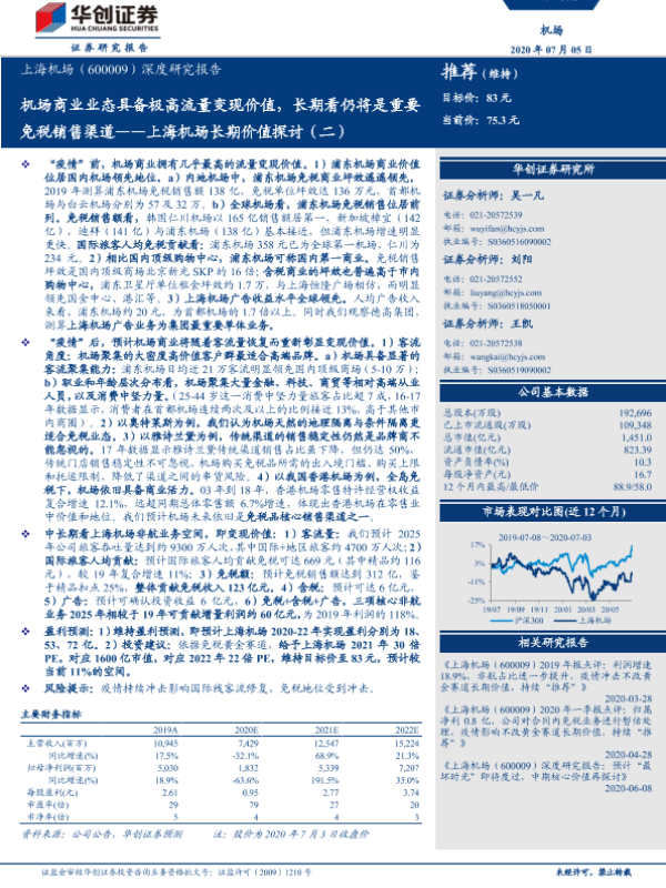 【华创证券】【20200705】上海机场长期价值探讨(二):机场商业业态具备极高流量变现价值,长期看仍将是重要免税销售渠道-28页 行业研究
