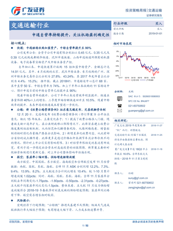【广发证券】【20190101】交通运输行业投资策略周报:申通自营率持续提升,关注机场盈利确定性-32页 行业研究