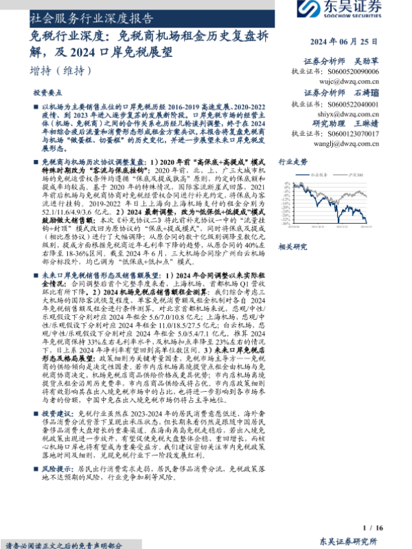 【东吴证券】【20240625】免税行业深度:免税商机场租金历史复盘拆解,及2024口岸免税展望-16页 行业研究