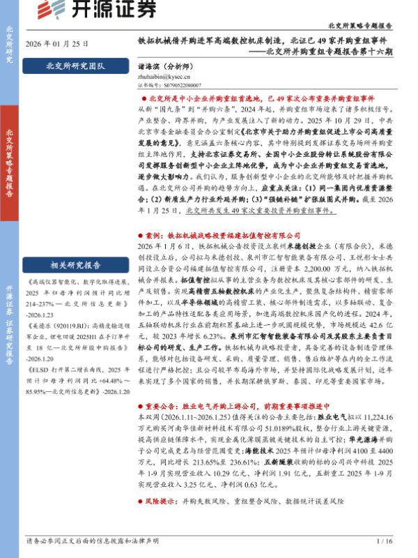 【开源证券】【202601】北交所并购重组专题报告第十六期_铁拓机械借并购进军高端数控机床制造_北证已49家并购重组事件-16页 证券期货研究报告