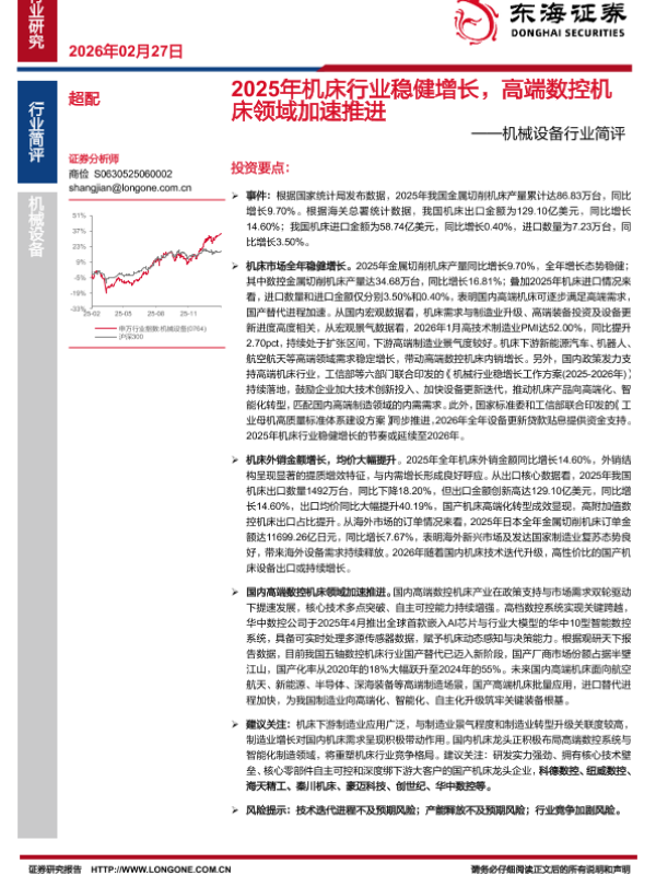 【东海证券】【202602】2025年机床行业稳健增长,高端数控机床领域加速推进-2页 证券期货研究报告