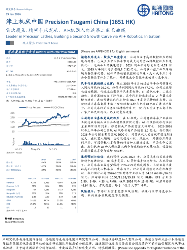 【海通国际】【202601】津上机床中国-首次覆盖优于大市-精密车床龙头,AI+机器人打造第二成长曲线-15页 证券期货研究报告