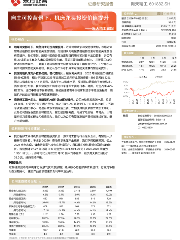 【东方证券】【202603】海天精工动态跟踪 ——自主可控背景下,机床龙头投资价值提升-5页 证券期货研究报告