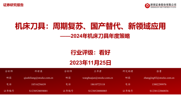 【浙商证券】【20231125】2024年机床刀具年度策略:机床刀具:周期复苏、国产替代、新领域应用-51页 行业研究