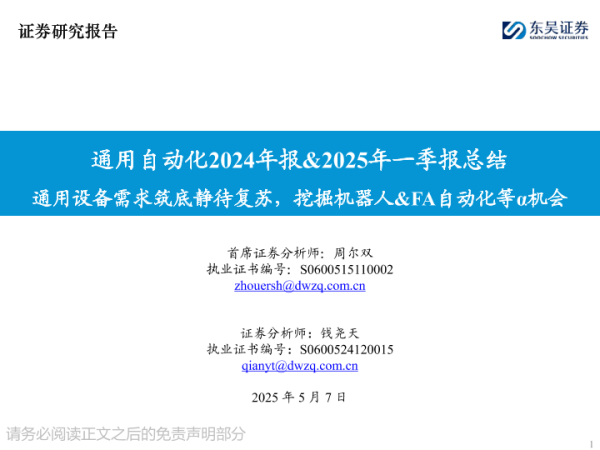 【东吴证券】【20250507】通用自动化行业2024年报&2025年一季报总结-52页 证券期货研究报告