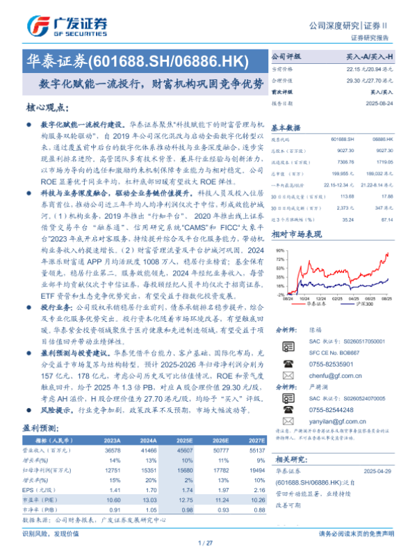 【广发证券】【202508】华泰证券(601688)数字化赋能一流投行,财富机构巩固竞争优势-27页 证券期货研究报告