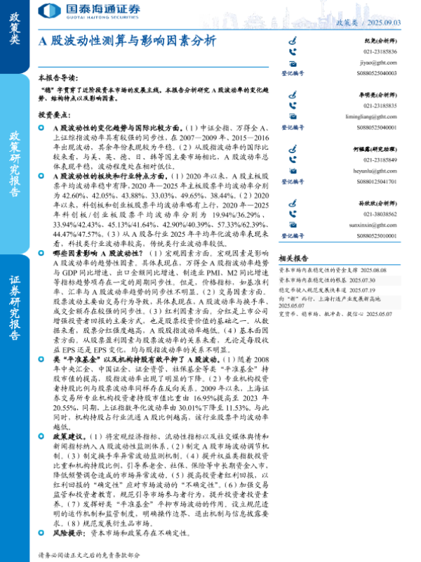 【国泰海通证券】【202509】A股波动性测算与影响因素分析-14页 证券期货研究报告