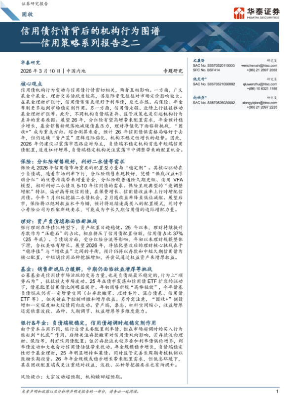 【华泰证券】【202603】信用债行情背后的机构行为图谱——信用策略系列报告之二-38页 证券期货研究报告