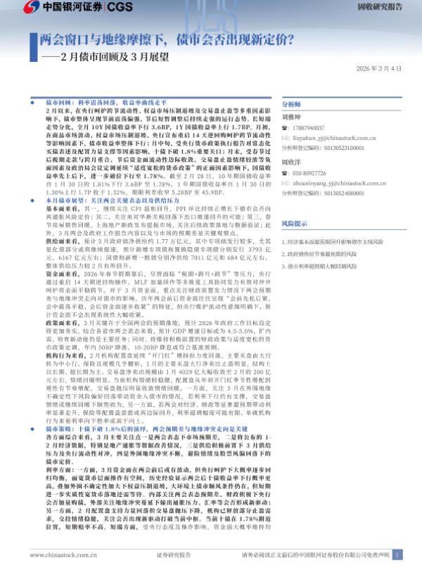 【银河证券】【202603】两会窗口与地缘摩擦下,债市会否出现新定价?——2月债市回顾及3月展望-18页 证券期货研究报告