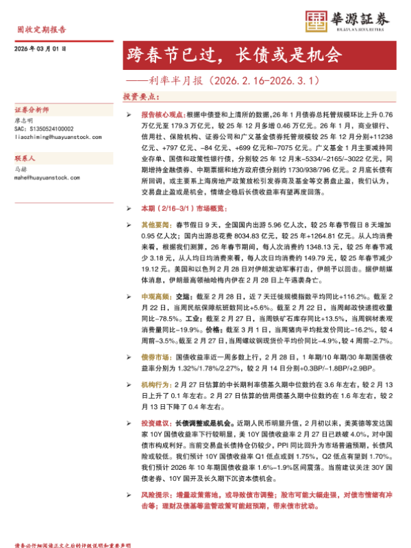 【华源证券】【202603】跨春节已过,长债或是机会-17页 证券期货研究报告