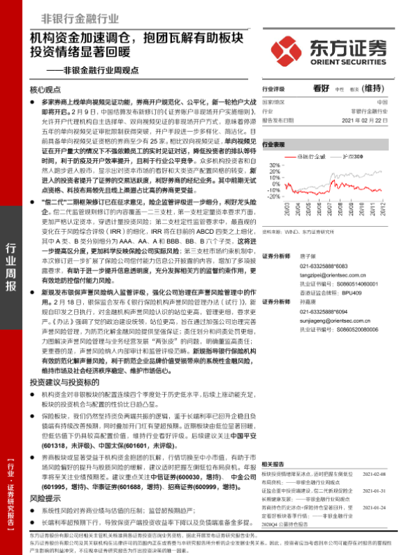 【东方证券】【20210222】非银金融行业周观点:机构资金加速调仓,抱团瓦解有助板块投资情绪显著回暖-14页 行业研究