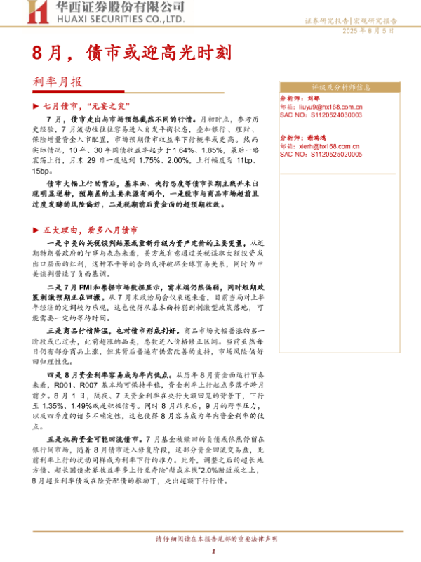 【华西证券】【202508】8月,债市或迎高光时刻-18页 证券期货研究报告
