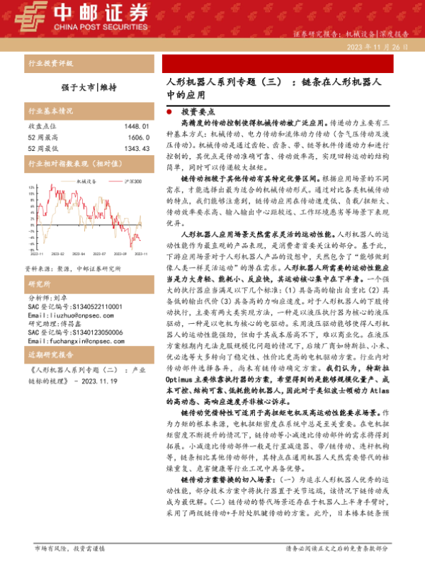 【中邮证券】【20231126】人形机器人系列专题(三):链条在人形机器人中的应用-19页 行业研究