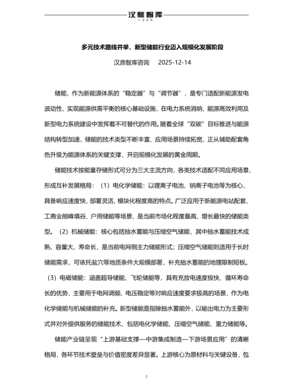【汉鼎智库咨询】【202512】多元技术路线并举,新型储能行业迈入规模化发展阶段-3页 行业研究