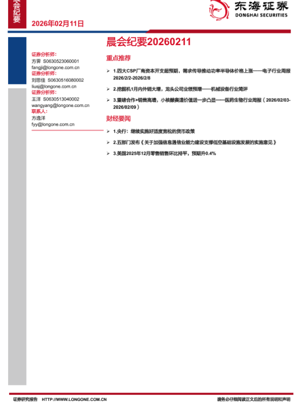 【东海证券】【202602】晨会纪要20260211-11页 会议纪要