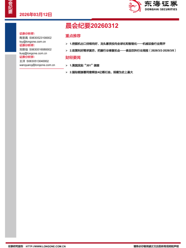 【东海证券】【202603】晨会纪要20260312-10页 会议纪要