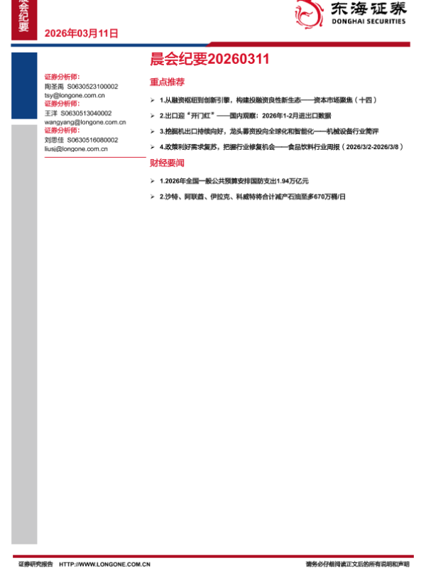 【东海证券】【202603】晨会纪要20260311-12页 会议纪要
