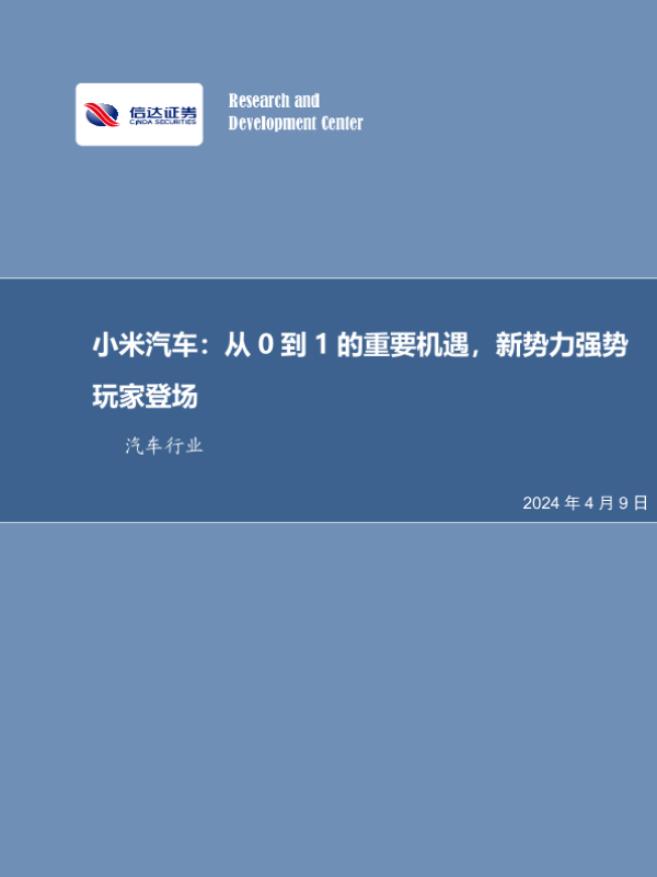【信达证券】【20240409】汽车行业小米汽车:从0到1的重要机遇,新势力强势玩家登场-22页 行业研究