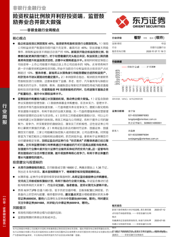 【东方证券】【20200719】非银金融行业周观点:险资权益比例放开利好投资端,监管鼓励券业合并做大做强-12页 行业研究