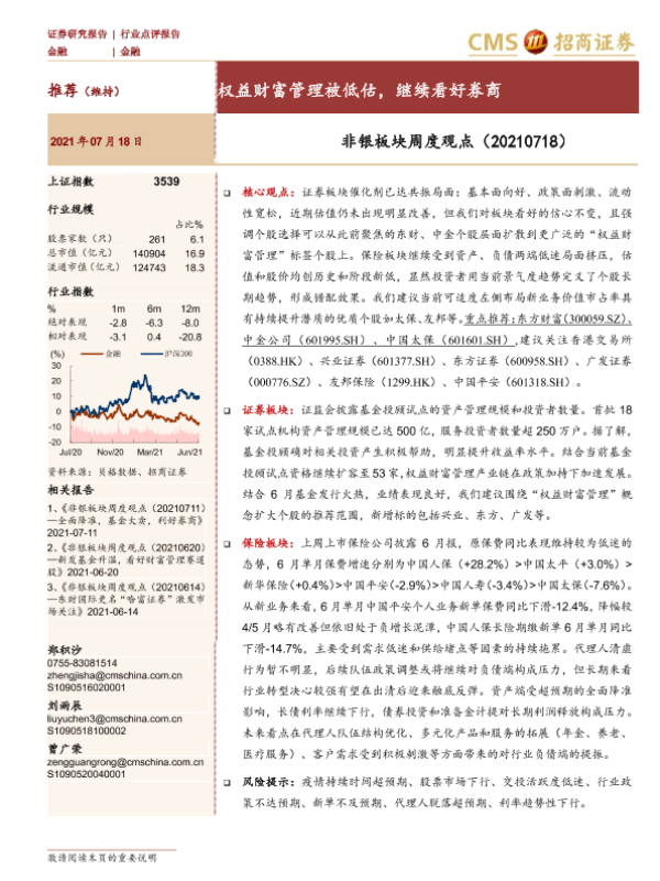 【海通证券】【20210718】非银板块周度观点:权益财富管理被低估,继续看好券商-2页 行业研究