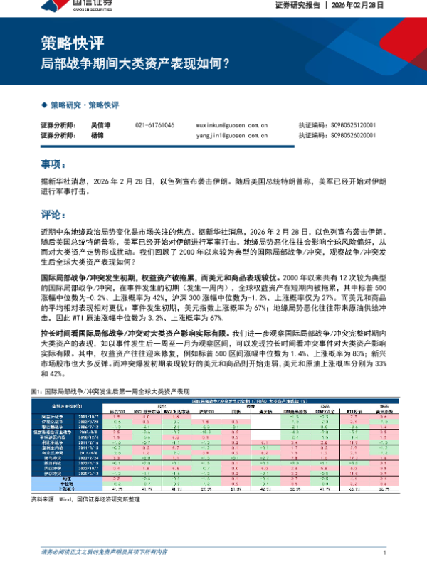 【国信证券】【202602】策略快评局部战争期间大类资产表现如何?-4页 证券期货研究报告