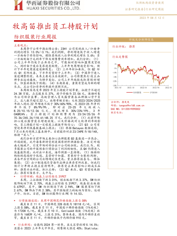 【华西证券】【20230812】纺织服装周报:牧高笛推出员工持股计划-26页 行业研究