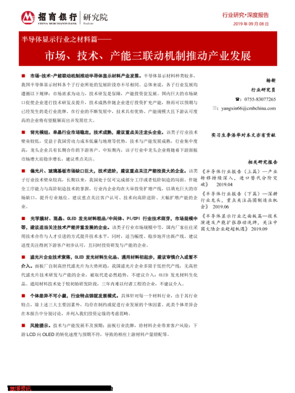 【招商银行】【20190908】半导体显示行业之材料篇——市场、技术、产能三联动机制推动产业发展-29页 行业研究