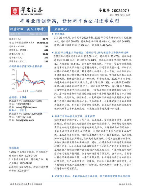【华安证券】【20230324】多氟多-002407.SZ-年度业绩创新高,新材料平台公司逐步成型-23页 行业研究