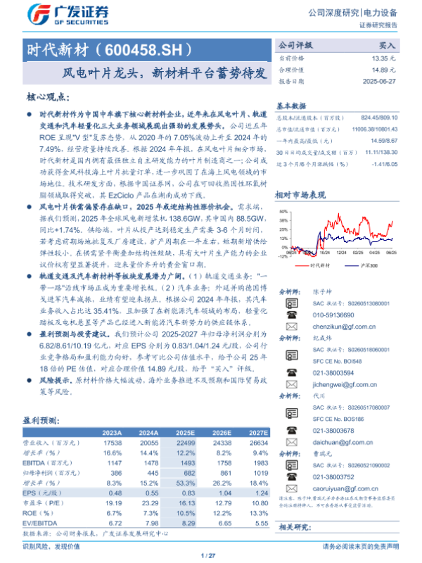 【广发证券】【20250627】时代新材(600458)风电叶片龙头,新材料平台蓄势待发-27页 公司研究
