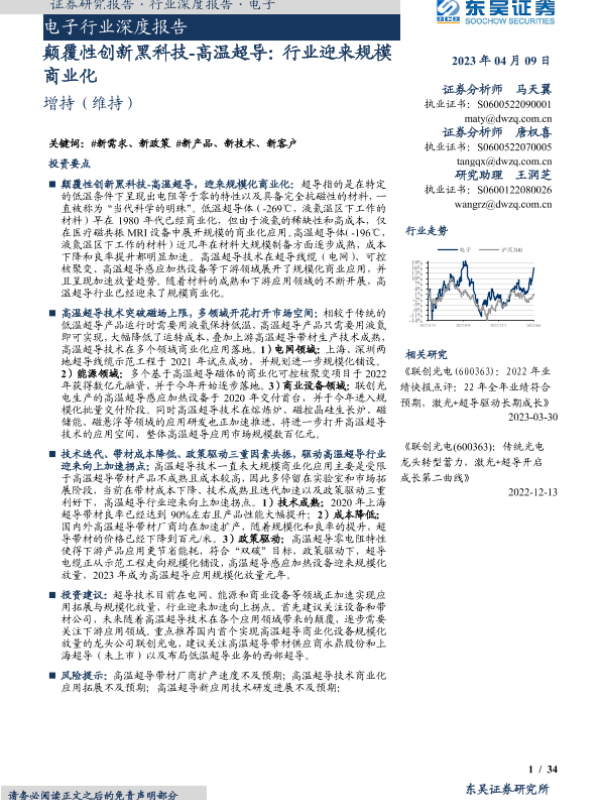 【东吴证券】【20230409】2023-04-10-电子行业深度报告-颠覆性创新黑科技-高温超导-行业迎来规模商业化-34页 行业研究