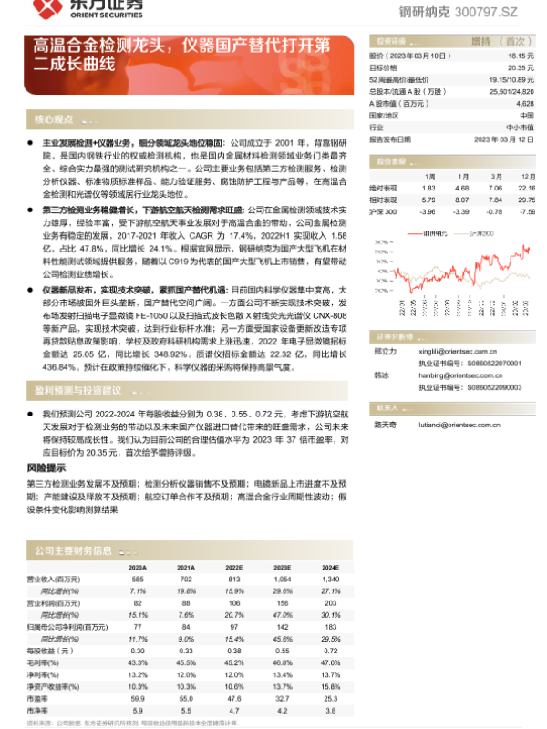 【东方证券】【20230312】钢研纳克-300797.SZ-高温合金检测龙头,仪器国产替代打开第二成长曲线-31页 行业研究