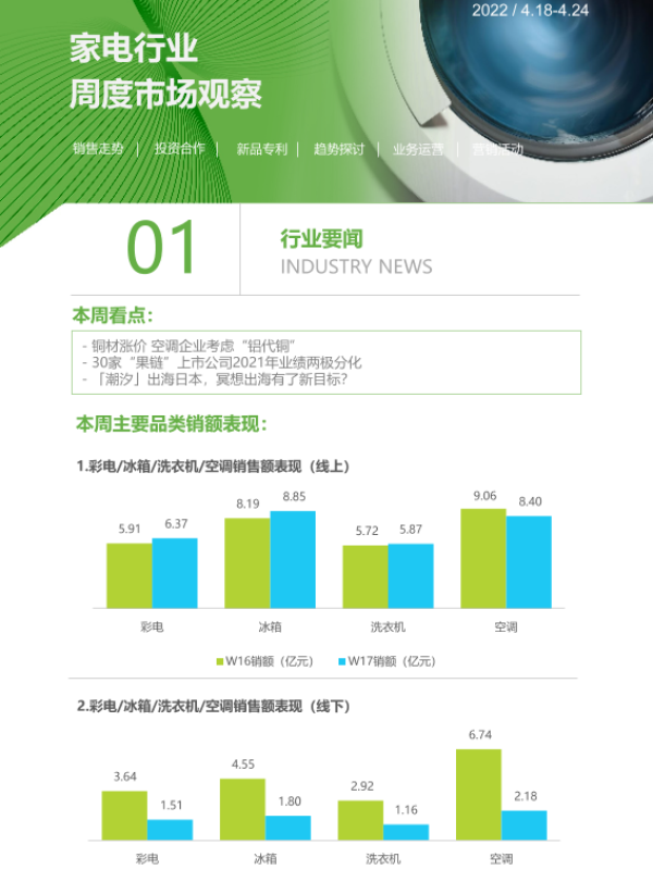 【艾瑞咨询】【20220424】2022年第17周:家电行业周度市场观察-8页 市场调研