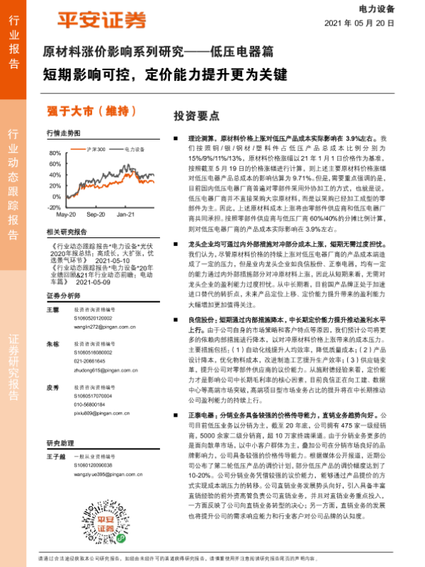 【平安证券】【20210520】原材料涨价影响系列研究-低压电器篇:短期影响可控,定价能力提升更为关键-12页 行业研究