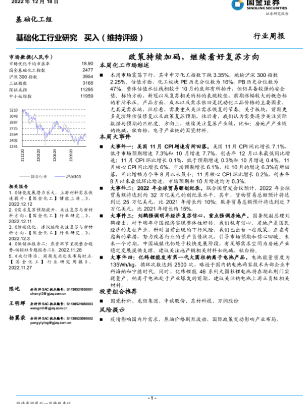 【国金证券】【20221218】基础化工行业研究:政策持续加码,继续看好复苏方向-25页 行业研究