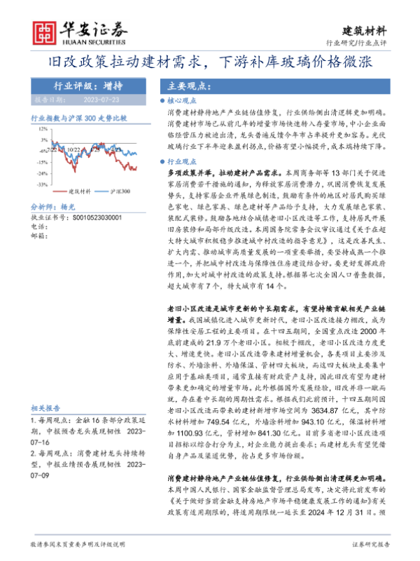 【华安证券】【20230723】旧改政策拉动建材需求,下游补库玻璃价格微涨-22页 行业研究