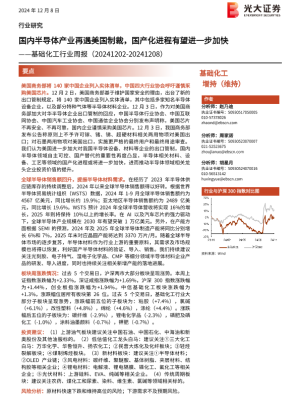 【光大证券】【20241208】国内半导体产业再遇美国制裁,国产化进程有望进一步加快——基础化工行业周报(20241202-20241208)-21页 行业研究