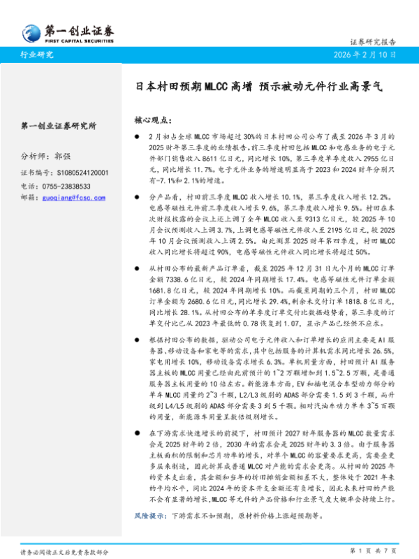 【第一创业证券】【2025】日本村田预期MLCC高增预示被动元件行业高景气-7页 证券期货研究报告