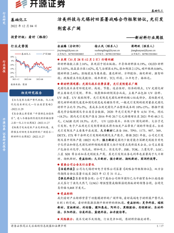 【开源证券】【20221204】新材料行业周报:洁美科技与无锡村田签署战略合作框架协议,光引发剂需求广阔-17页 行业研究