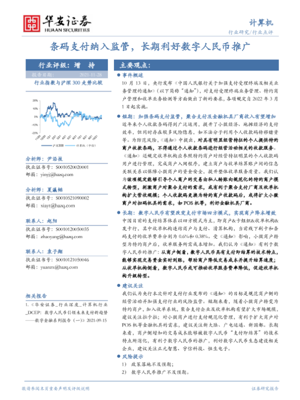 【华安证券】【20211128】条码支付纳入监管,长期利好数字人民币推广-2页 行业研究