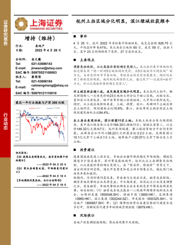 【上海证券】【20220426】杭州土拍区域分化明显,滨江绿城收获颇丰-2页 行业研究
