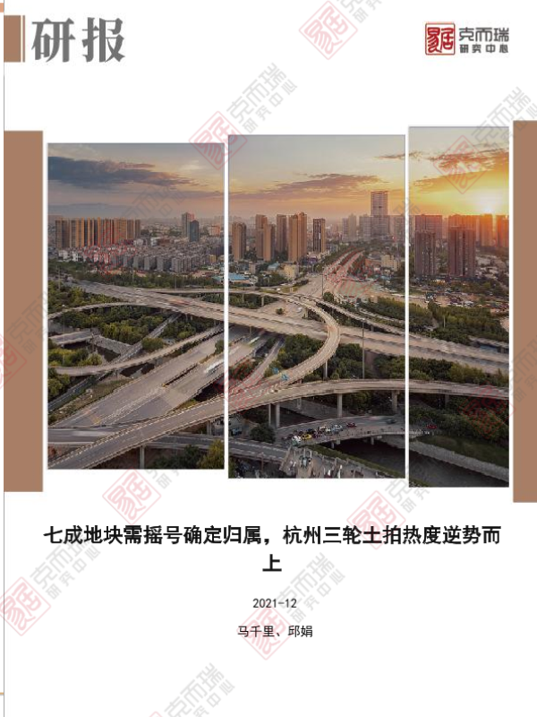 【克而瑞研究中心】【202112】七成地块需摇号确定归属,杭州三轮土拍热度逆势而上-6页 行业研究