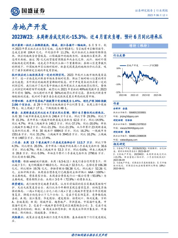 【国盛证券】【20230612】2023W23:本周新房成交同比-15.3%,近4月首次负增,预计6月同比将承压-14页 行业研究