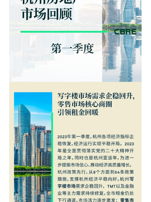 【CBRE杭州分公司】【20230101】2023年第一季度杭州房地产市场回顾-7页 行业研究