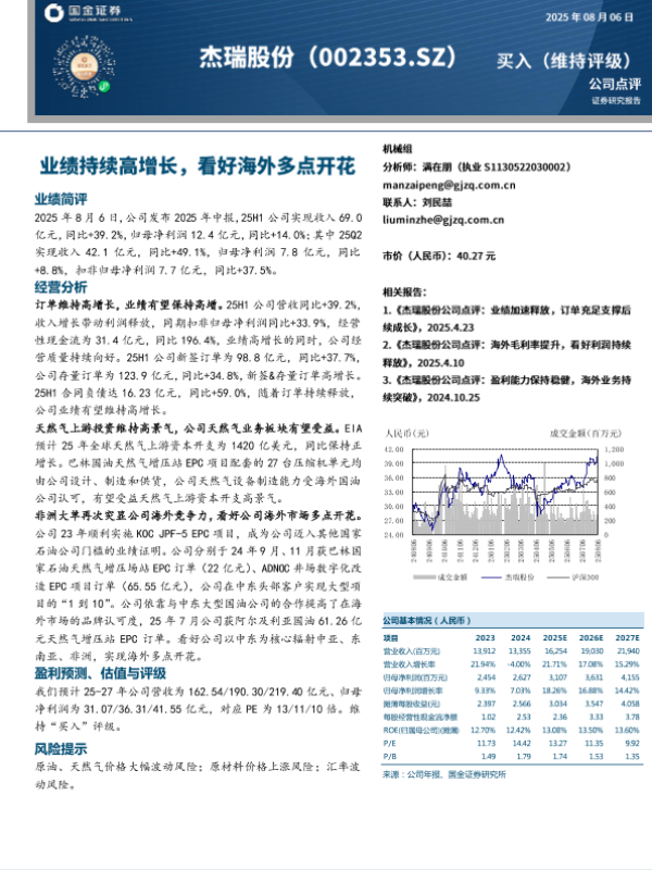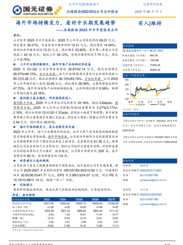 【国元证券】【20250811】杰瑞股份2025年半年度报告点评:海外市场持续发力,看好中长期发展趋势-3页 公司研究
