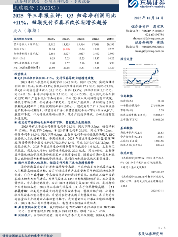 【东吴证券】【202510】2025年三季报点评:Q3归母净利润同比 +11%,短期交付节奏不改长期增长趋势-3页 证券期货研究报告