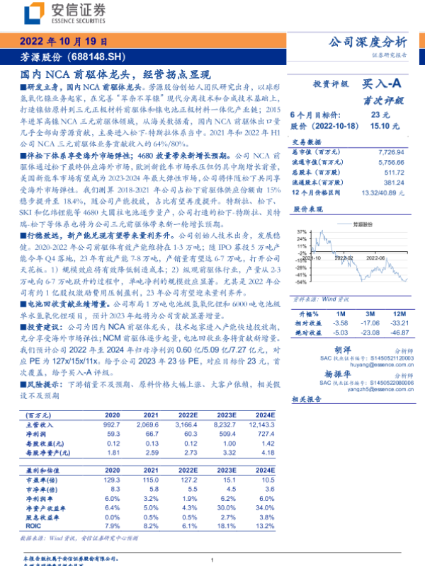 【安信证券】【20221019】国内NCA前驱体龙头,经营拐点显现-34页 行业研究