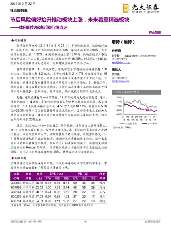 【光大证券】【20190222】休闲服务板块近期行情点评-3页 行业研究