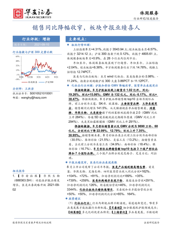 【华安证券】【20210910】休闲服务深度报告:销售同比降幅收窄,板块中报业绩喜人-24页 行业研究