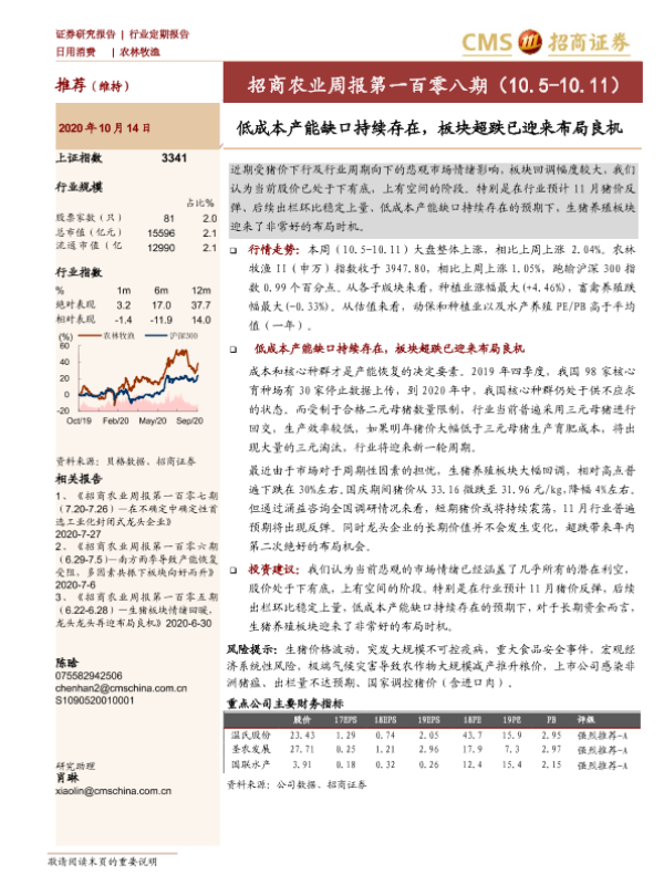 【海通证券】【20201014】招商农业周报第一百零八期:低成本产能缺口持续存在,板块超跌已迎来布局良机-25页 行业研究